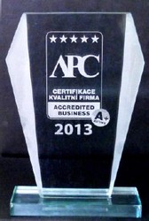 Novinkou a překvapením letošního předávání bylo ocenění APC ACCREDITED BUSINESS A+ rating 2013. Zmíněné ocenění obdržely pouze firmy, které získaly hodnocení od zákazníků do průměru 1,3. Patří tedy ke špičce kvalitních firem.